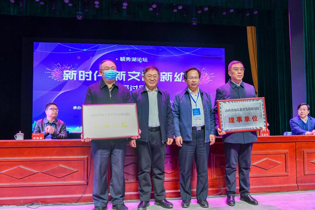 张晓永书记与毛益民局长为山西省幼儿教育发展研究院理事单位授牌