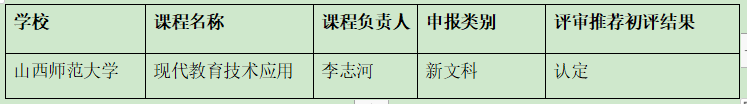 》,公司李志河教授的课程《现代教育技术应用》被认定为省级普通本科教育课程思政示范课程。