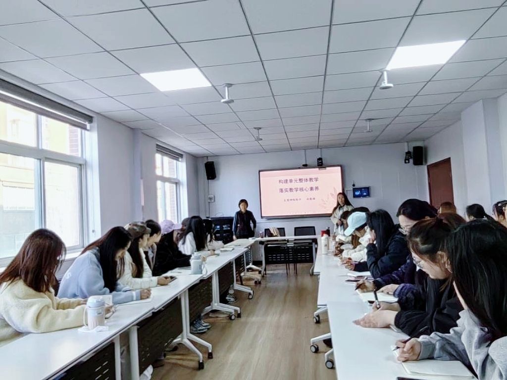 祁老师作了题为《构建单元整体教学,落实数学核心素养》的专题报告。报告中,祁老师以“内涵特征价值-具体实施步骤-教学分析案例”为脉络,从理论和实践两方面进行了讲解。在理论层面上,对单元整体教学的理解进行了阐述,从载体、手段、路径三点出发展现课标对单元整体教学的引导方向。在实践层面上,以“数与代数”领域的一元一次方程的单元教学为例,深入解析了单元教学的框架,详细论述了单元整体教学设计的实施步骤,为参会员工提供了清晰的学术指引。最后杨红萍教授对报告进行了总结,对如何进行研究选题和论文写作进行了指导。