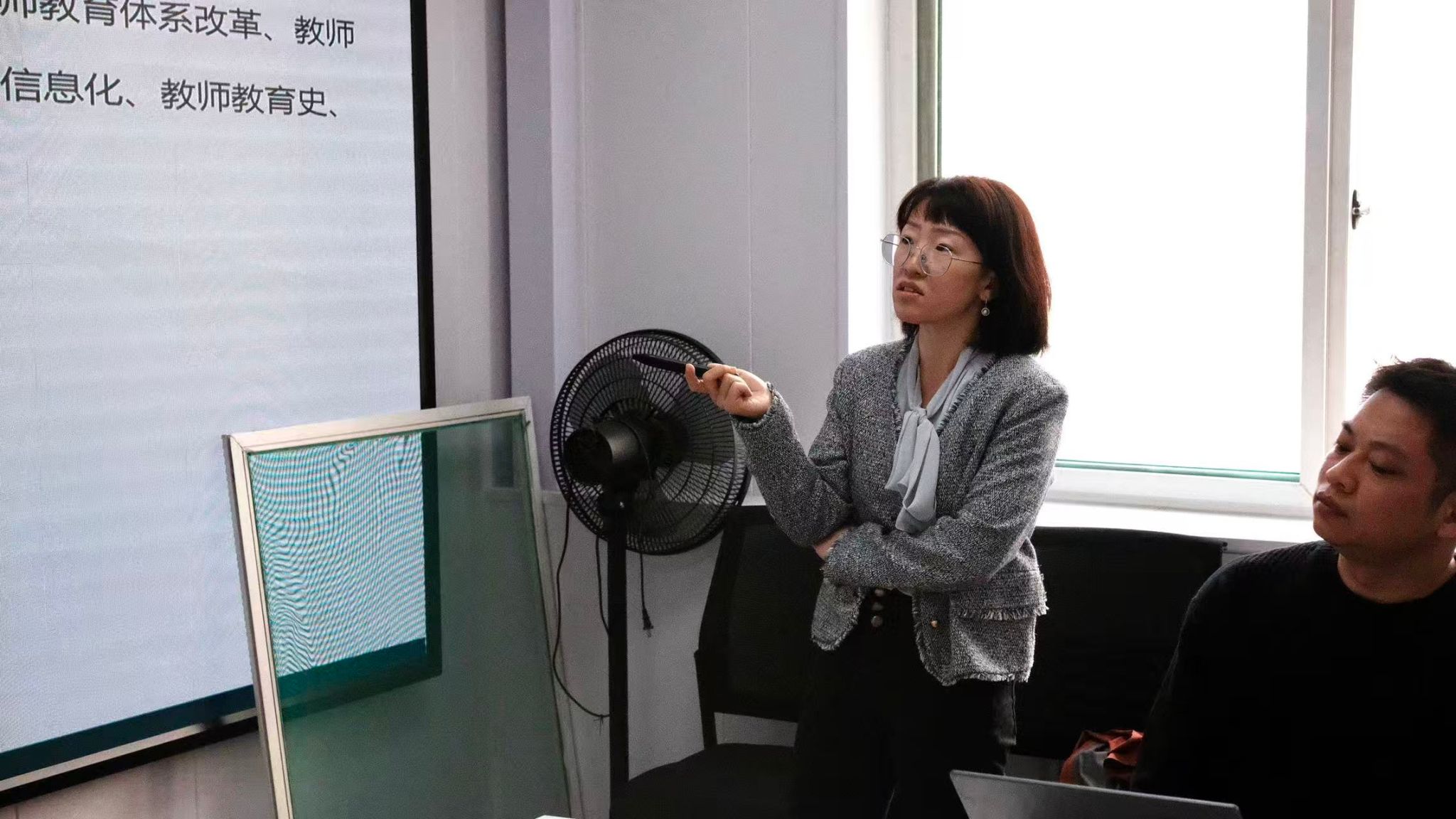 此次学术沙龙分为报告分享、学术指导、总结点评三个环节。在报告分享环节,赵国栋博士、时思博士、闫领楠博士分别作了题为《乡村教师缘何疏离数字技术》《学校动机氛围对中小学教师知识行为的影响机制》《生态危机视域下教育空间的转向与重构》的专题分享。在学术指导环节,张海燕老师详细介绍了《教师教育研究》期刊的基本情况、主题类型和选题分析,重点介绍了期刊的审稿要点,并就“高质量学术论文的基本特征”“如何写好一篇高质量学术论文”等与老师们做了交流分享。针对三位博士的研究,张海燕老师从主题选择、研究范式、参考文献和后续修改发表流程等角度提出了建设性意见和建议。最后,赵英经理进行了总结点评,并对三位博士的研究和汇报提出了针对性的优化意见。