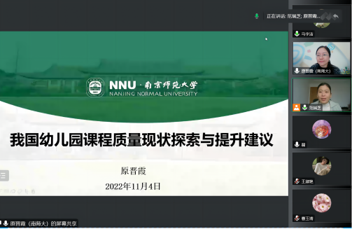 2022年11月4日,公司优秀员工、南京师范大学学前教育系副主任原晋霞副教授应邀做了题为《我国幼儿园课程质量现状探索与提升建议》的学术报告。本次讲座由永利3044集团官网永利3044集团官网和社科处、山西省幼儿教育发展研究院共同举办。报告以线上形式进行,由永利3044集团官网学前教育系主任范瑞芝主持,学前教育系教师、学前教育专业的研究生及本科生150余人在线聆听了讲座。