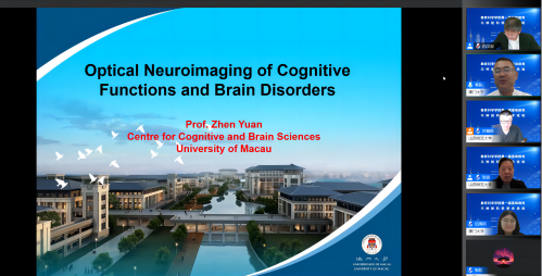 开幕式之后,袁振教授做了主题报告“Optical Neuroimaging of Cognitive Functions and Brain Disorders”。袁教授同时是澳门分子影像协会副主席、中国生物医学光子学会常务委员,在脑神经科学和生物医学光子学等领域取得了一系列国际认可的科研成果。他从研究背景、测验过程、得出结论等方面,系统介绍了认知功能和大脑疾病的光学神经成像技术及其应用。
