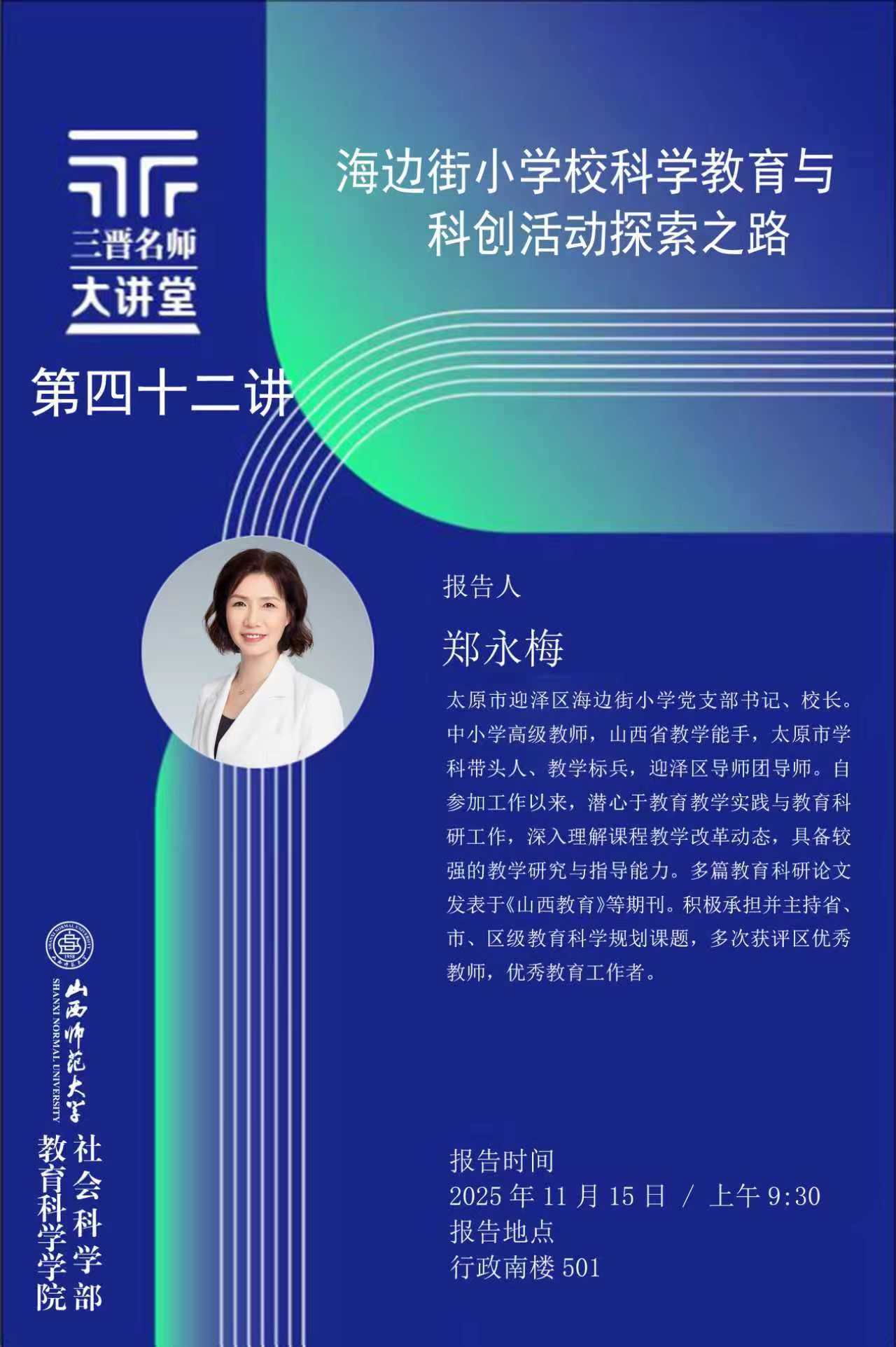 【预告】太原市海边街小学党支部书记、董事长郑永梅应邀来公司作学术报告