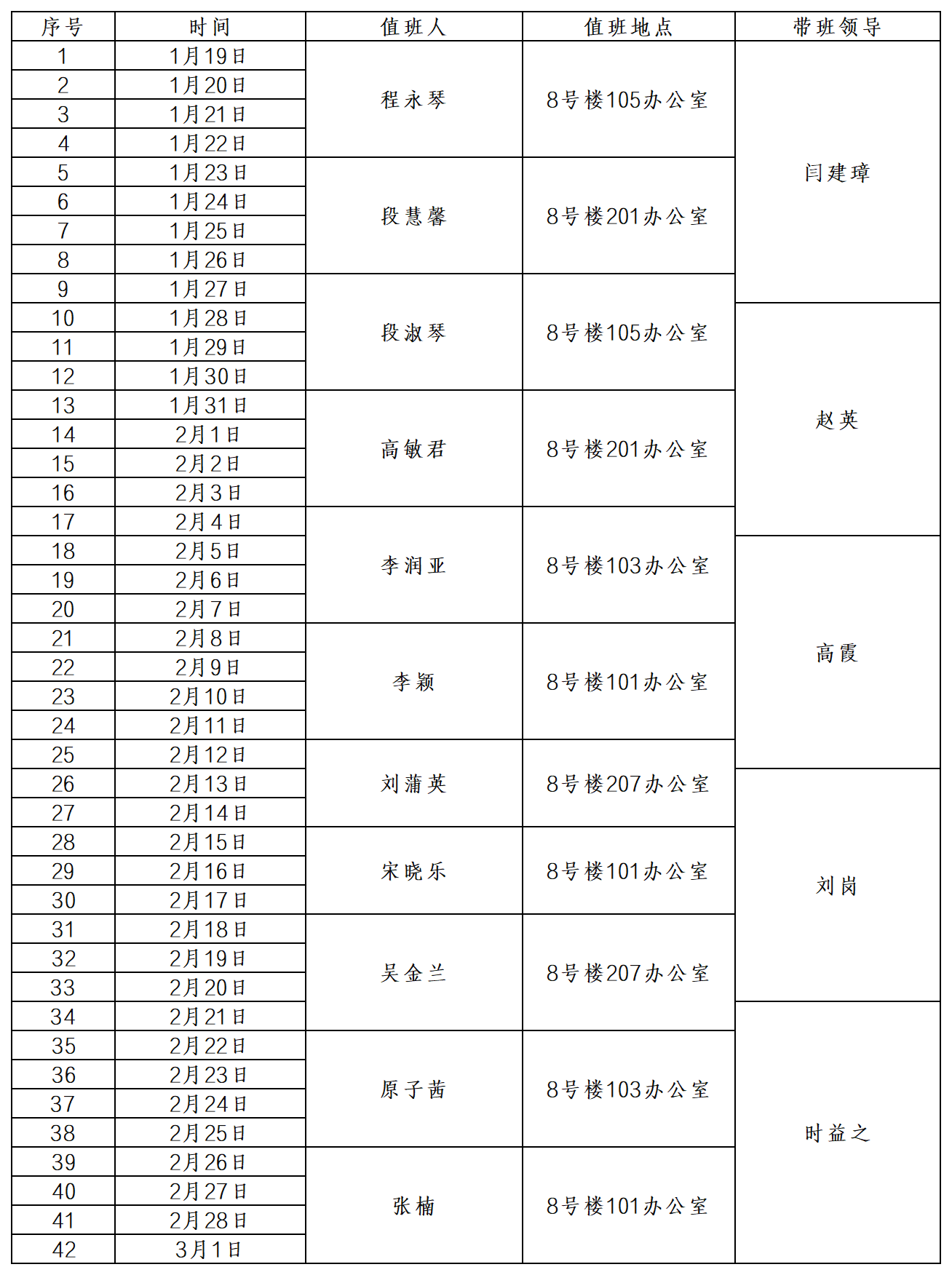 2025-2026学年第一学期寒假期间永利3044集团官网值班安排表