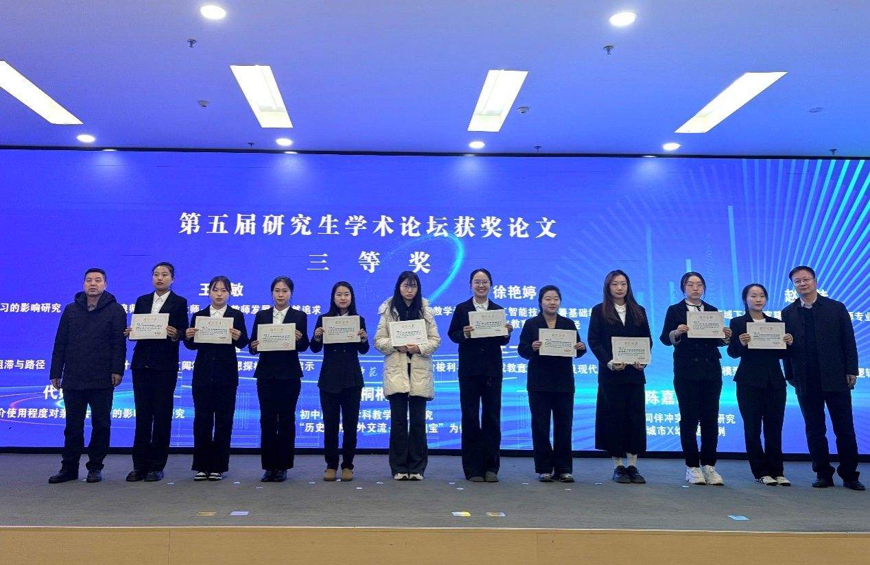 在专题分享环节,公司张剑兰、韩乐祺、段云弘等12名硕士研究生依次登台分享学术成果,他们聚焦教育家精神、核心素养导向、教育政策发展以及数字教育等前沿方向,结合实证研究数据与一线教育观察,从课题背景、研究设计到实践启示展开系统阐述。报告内容兼具理论深度与实践温度,既有对经典教育理论的创新解读,也有对教学场景痛点的针对性探索,既体现了研究生们深耕学术的严谨态度,也展现了其服务教育实践的开阔视野,收获了现场师生的热烈反响与持续掌声。