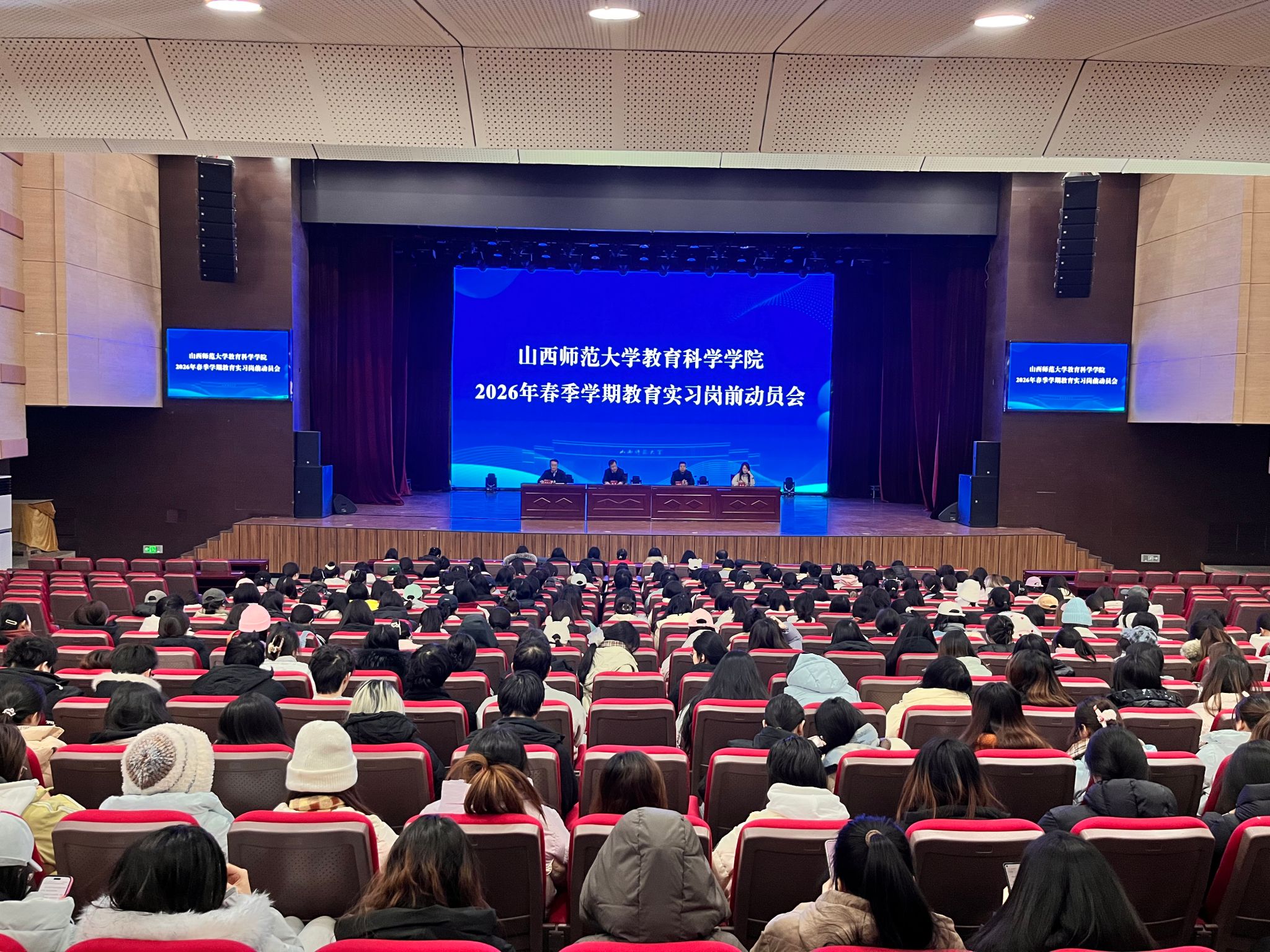 1月4日上午,公司在科学会堂报告厅召开2026年春季学期教育实习岗前动员会。学院班子成员、系主任、实习指导教师、2023级各班辅导员及2026年春季学期全体本科实习员工参加会议,会议由副经理时益之主持。