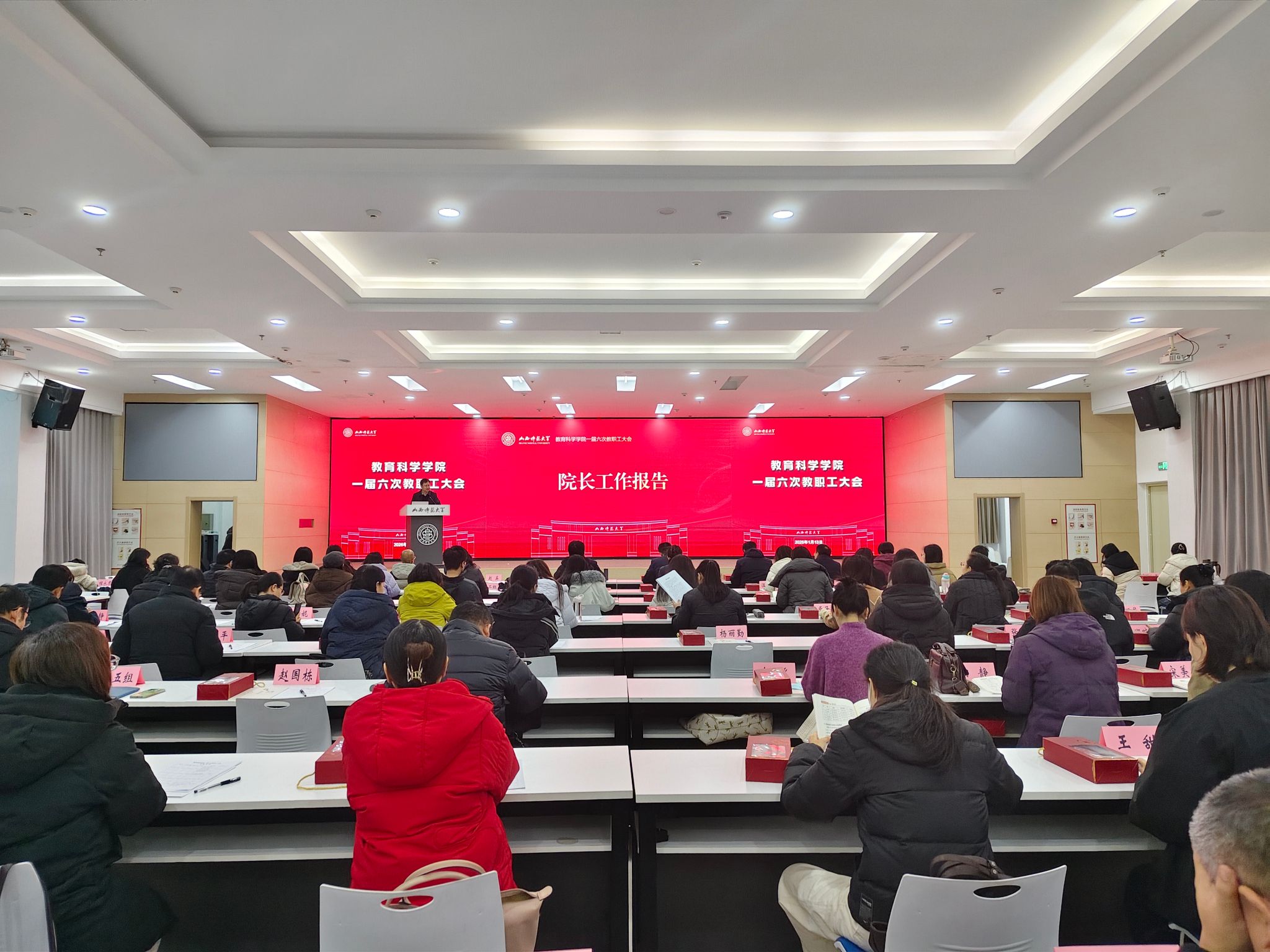 1月13日,公司一届六次教职工大会在毓秀学堂报告厅召开,全体教职工参加会议,会议由公司党委副书记高霞主持。