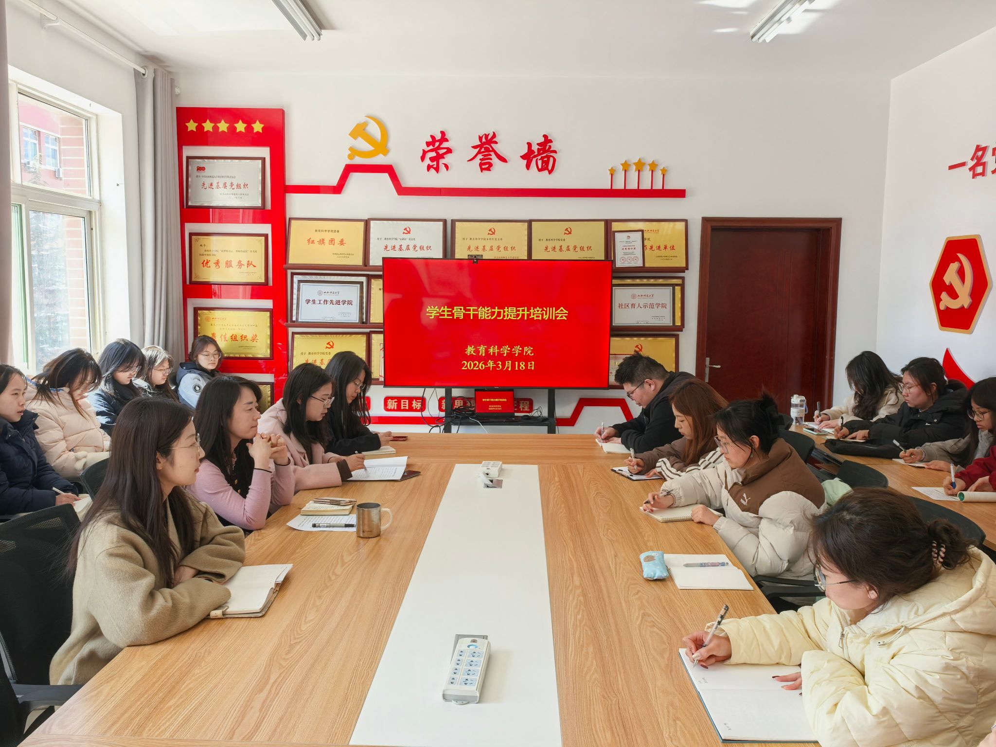 3月18日,公司召开员工骨干能力提升专题会,公司党委副书记高霞、专职辅导员及全体员工骨干参加会议,会议由院团委书记高敏君主持。