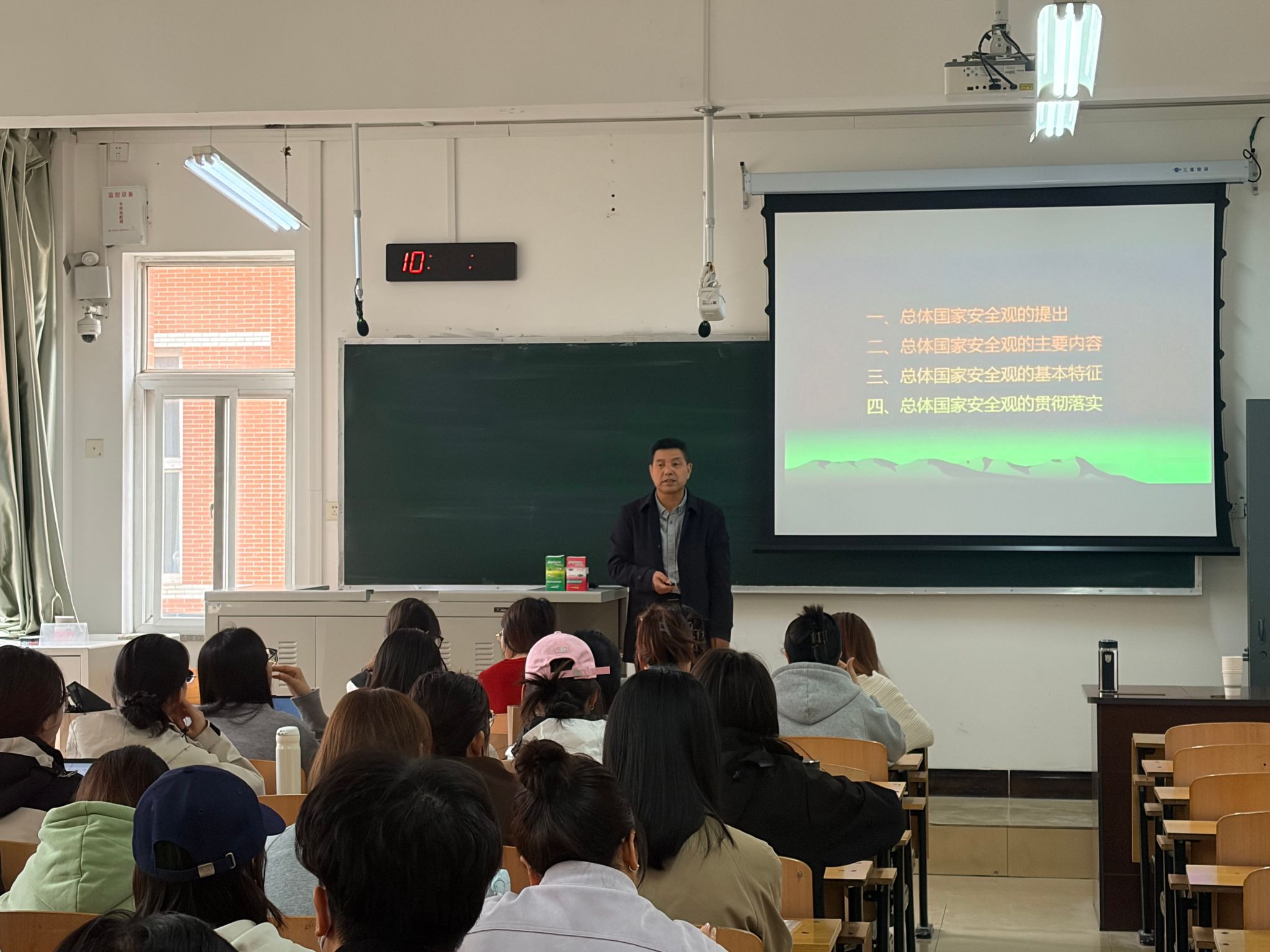 4月15日,公司党委书记闫建璋在4205教室讲授“总体国家安全观”主题思政课。学院师生代表50余人参加。