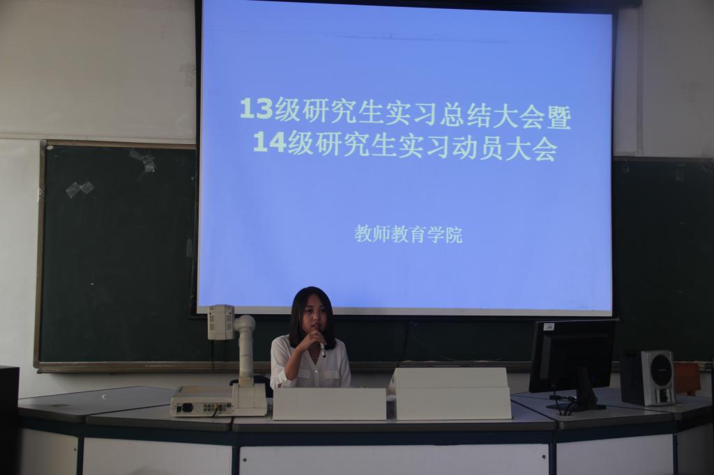 7月5日上午和下午,教师教育学院在07408举办了2013级研究生实习总结大会暨2014级研究生实习动员大会。教师教育学院经理董新良、副经理张潮、部分员工导师、全体2013级研究生及2014级研究生参加了本次会议,