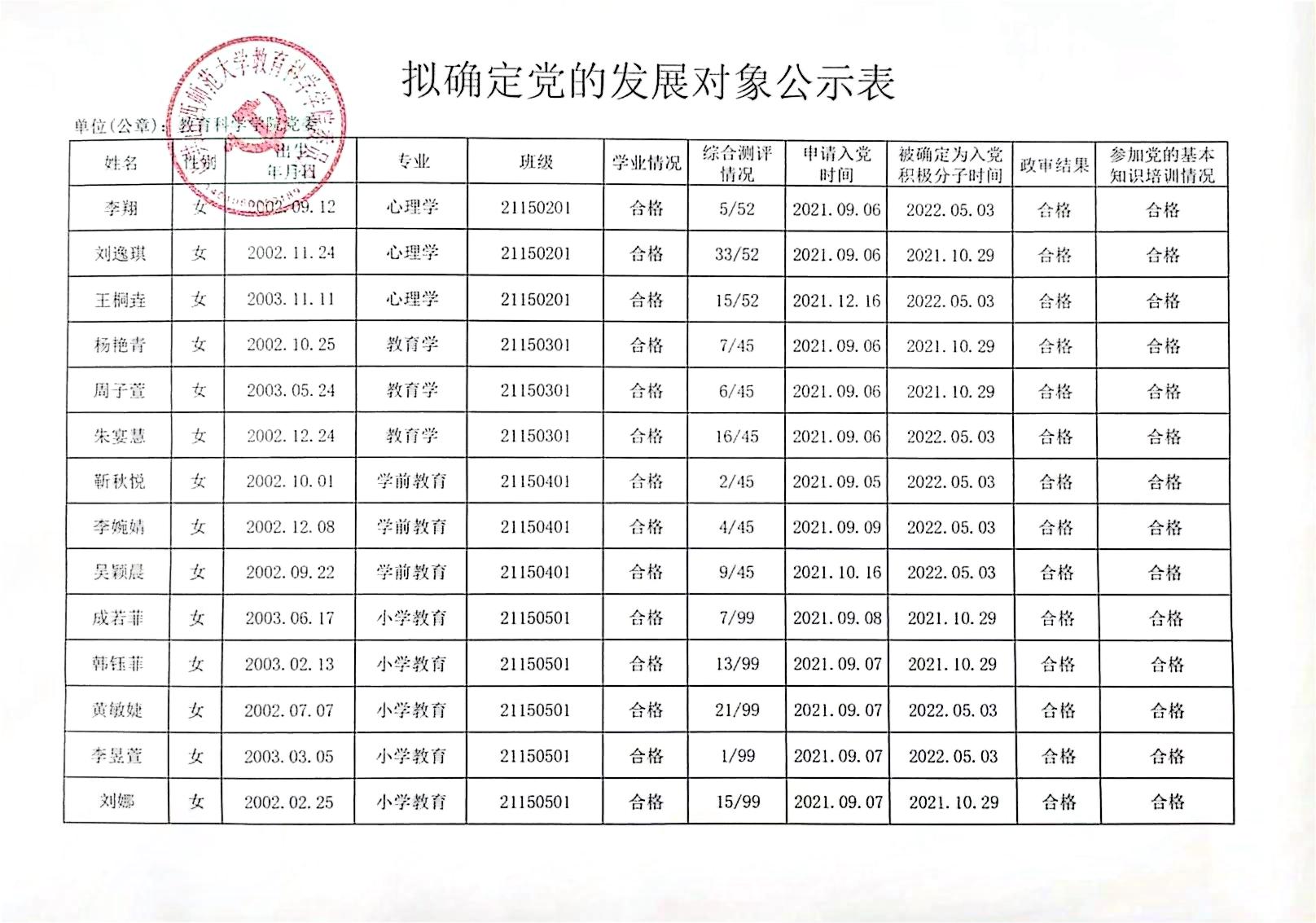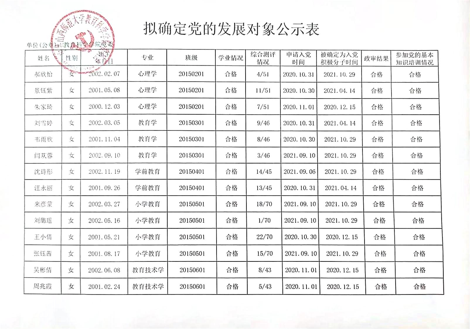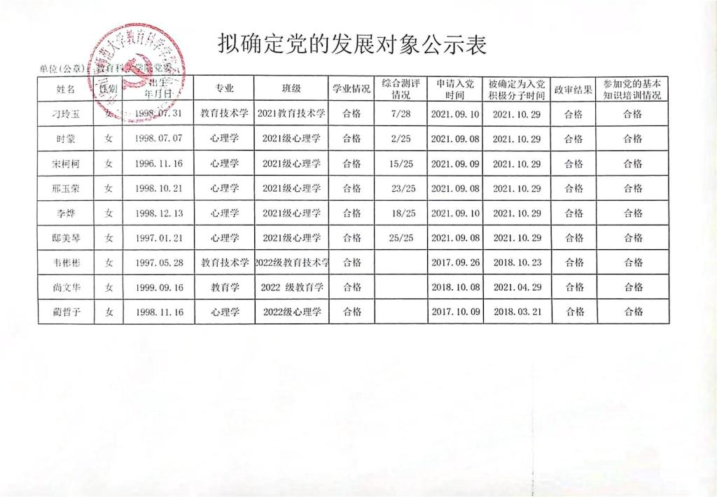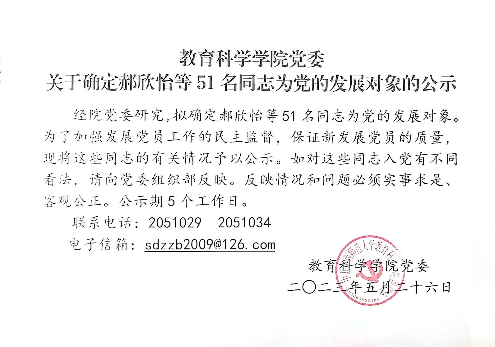 关于确定郝欣怡等51名同志为党的发展对象的公示
