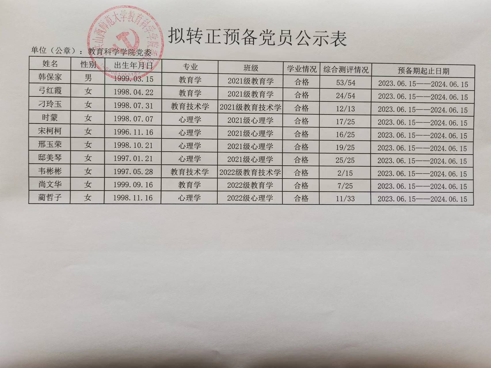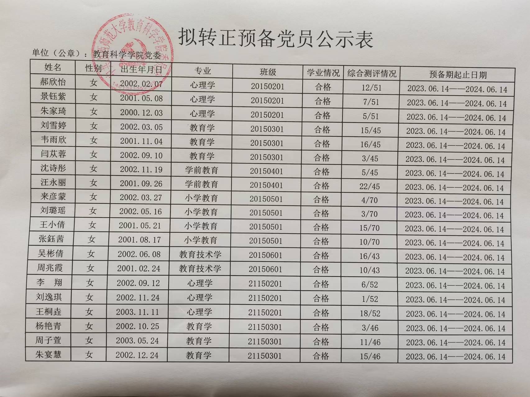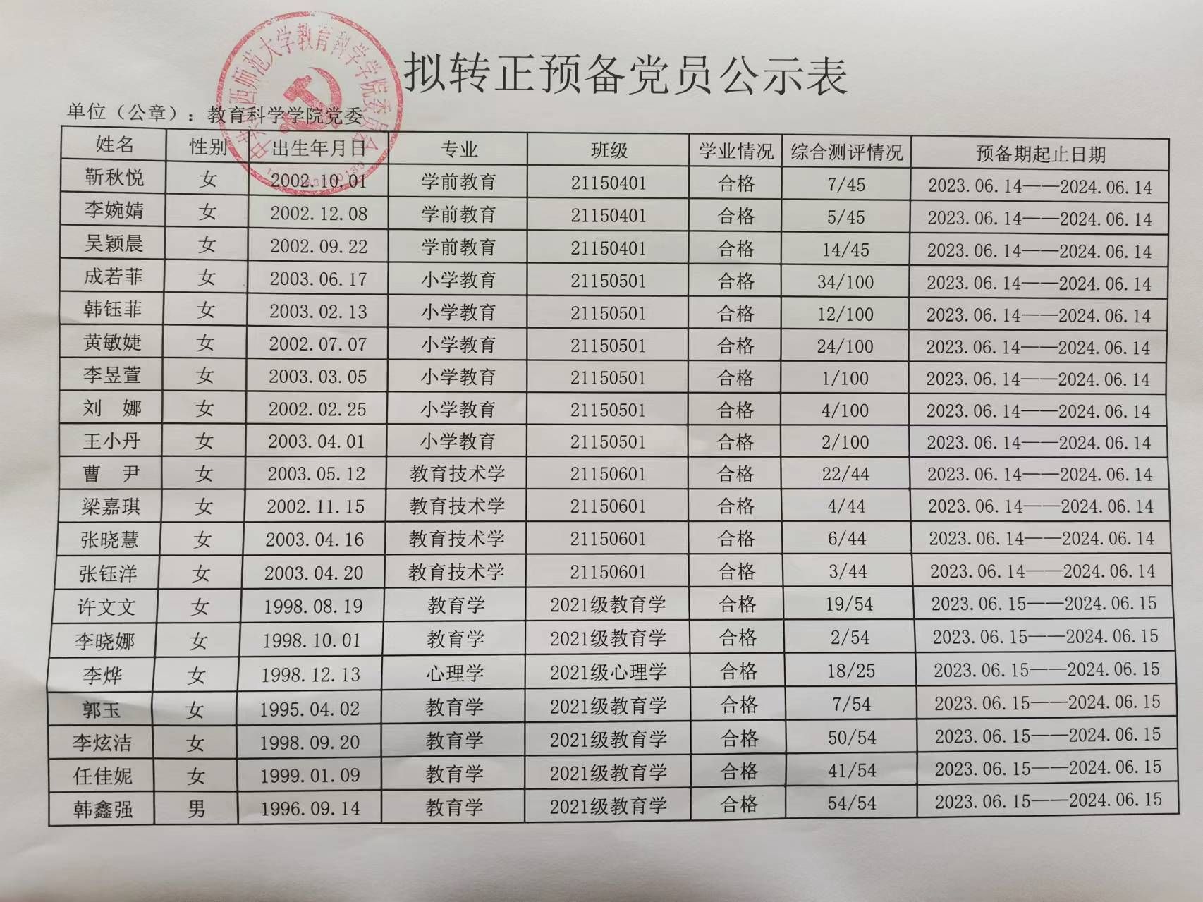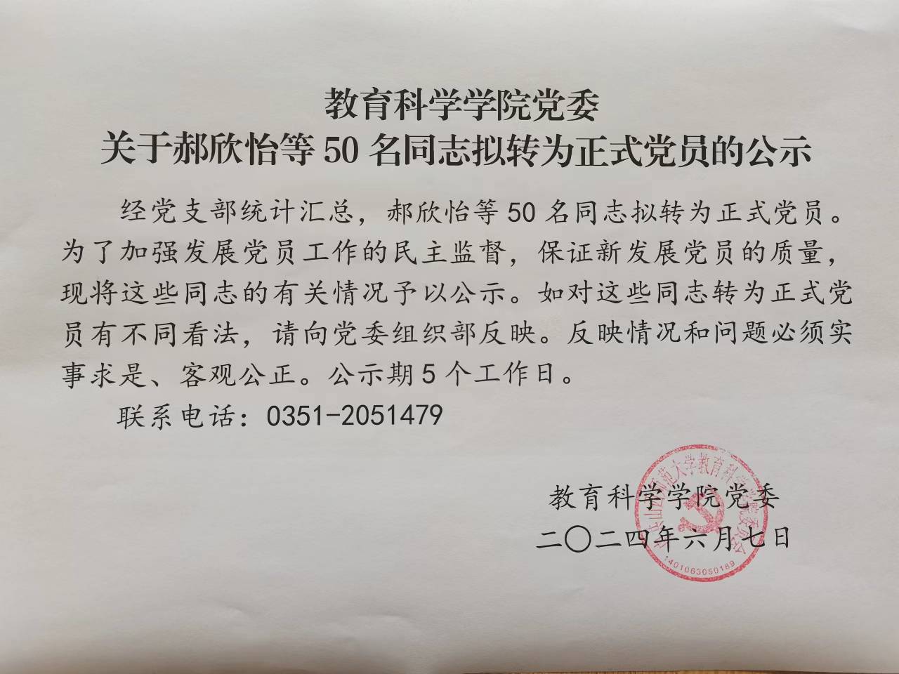 关于郝欣怡等50名同志拟转为正式党员的公示