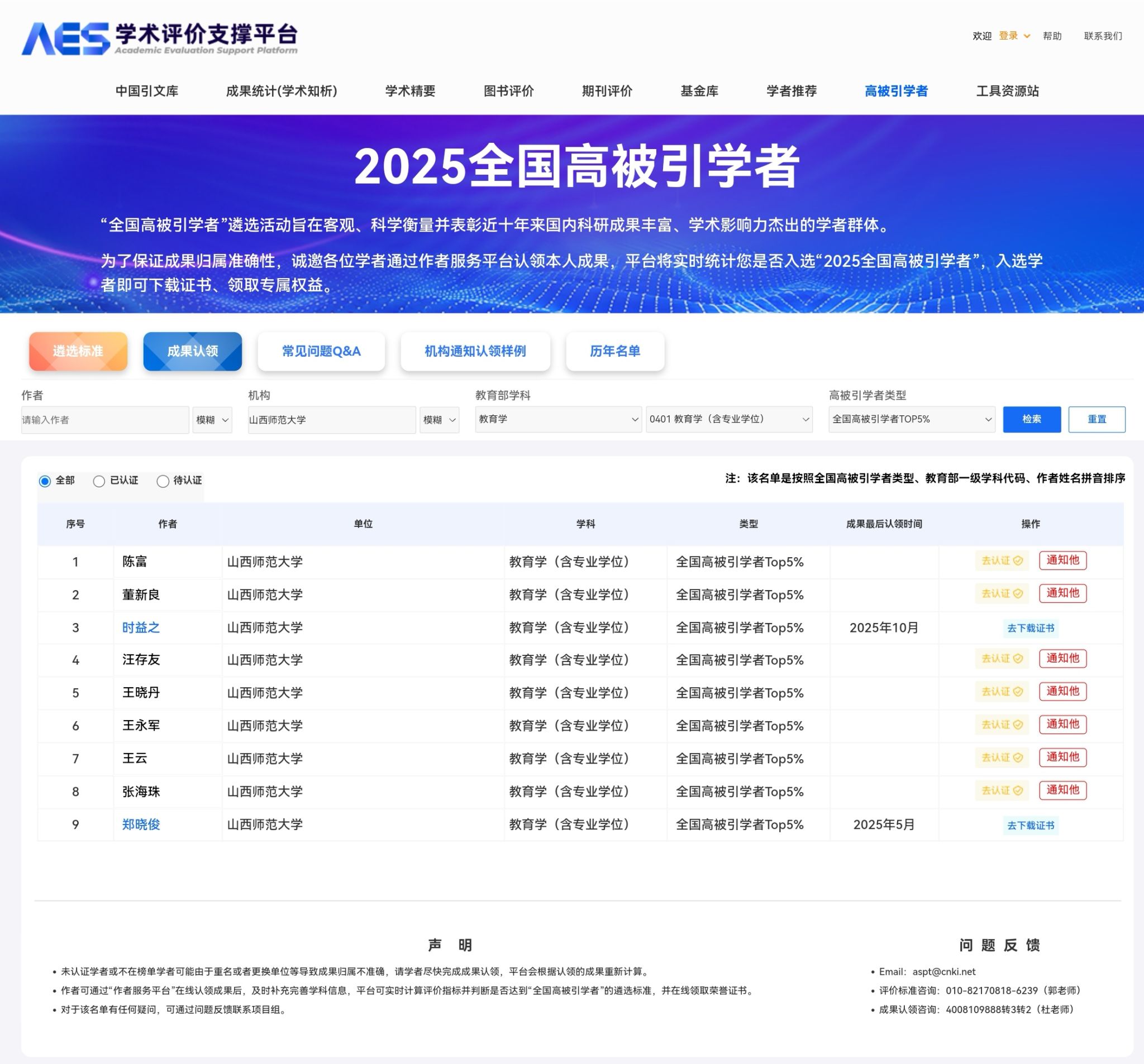 近日,中国知网下属的中国科学文献计量评价研究中心发布了“2025全国高被引学者”榜单。公司教育学学科共15位教师入选,较上年增加了3人,增幅达25%。其中,6位教师入选“全国高被引学者TOP1%”,9位教师入选“全国高被引学者TOP5%”,从一个侧面彰显出公司教师对教育科研与学科发展的贡献和学术影响力。