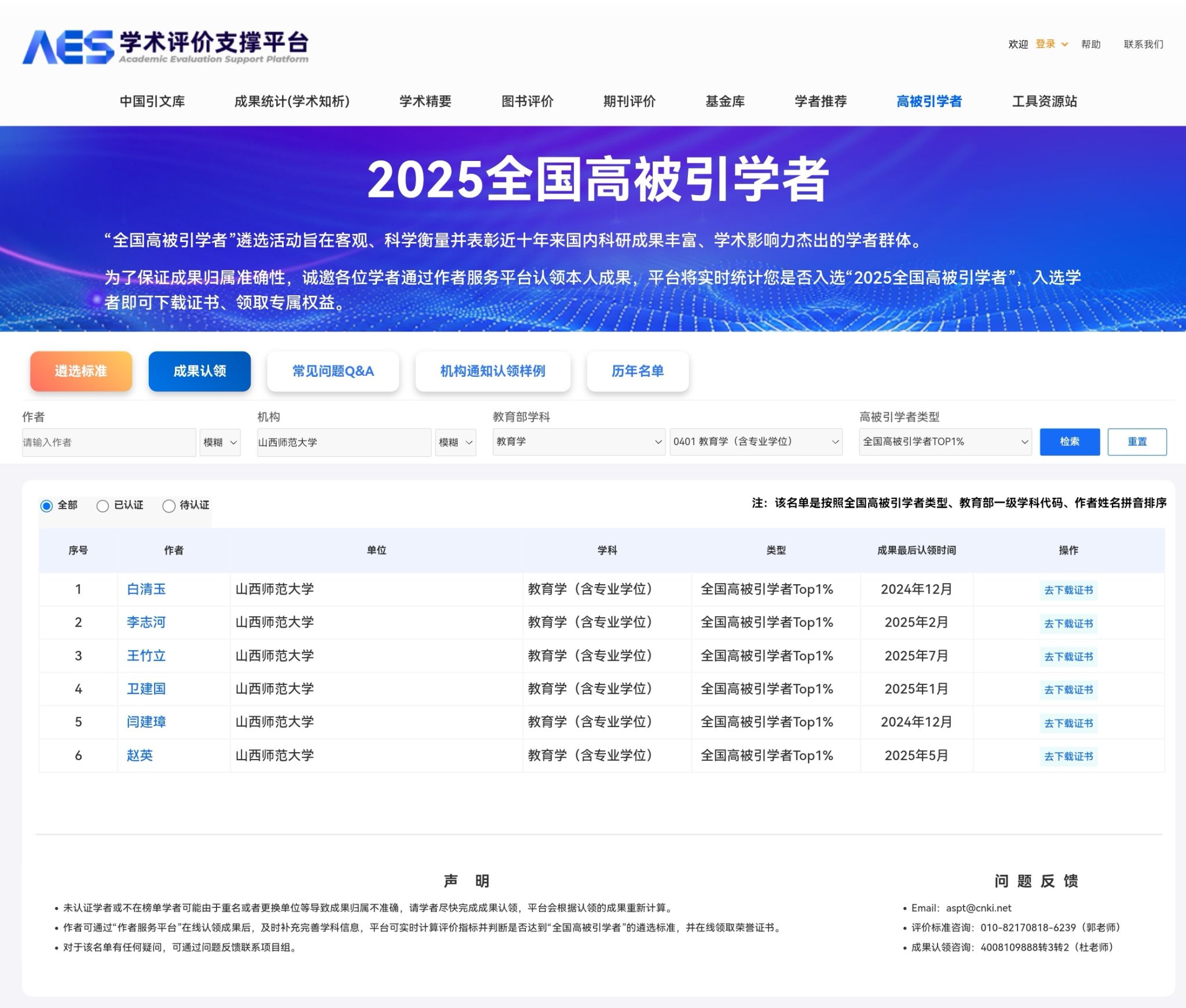 喜报 | 公司15位教师入选“2025全国高被引学者”榜单
