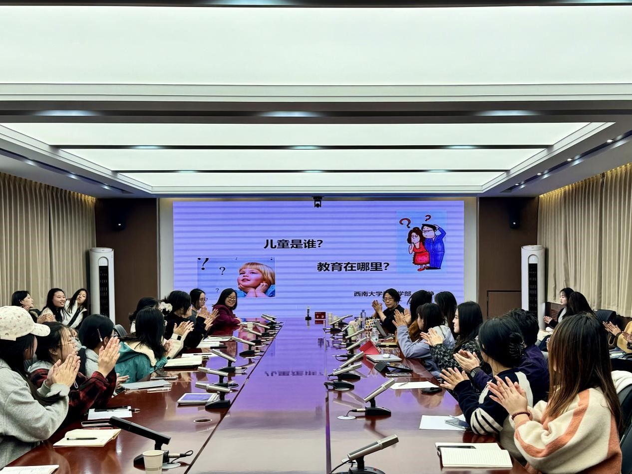 李静教授作了题为《儿童是谁?教育在哪里?》的专题报告,深入剖析了儿童观、教育观、教育行为与儿童发展的关系,并深刻阐明了儿童发展既是教育的起点,也是教育的最终目标。在深入解读“儿童不是成人的缩影”这一核心儿童观的基础上,进一步围绕“儿童是好学的”这一命题系统梳理了其内涵、表征与根源,提出教育要重视儿童的体验式学习,让儿童在亲身体验中认识世界、建构意义。整场讲座既有理论深度,又贴近现实需求,兼具学术性、实用性与趣味性。在场师生对科学的儿童观与教育观、体验学习的价值有了更为全面的认识。