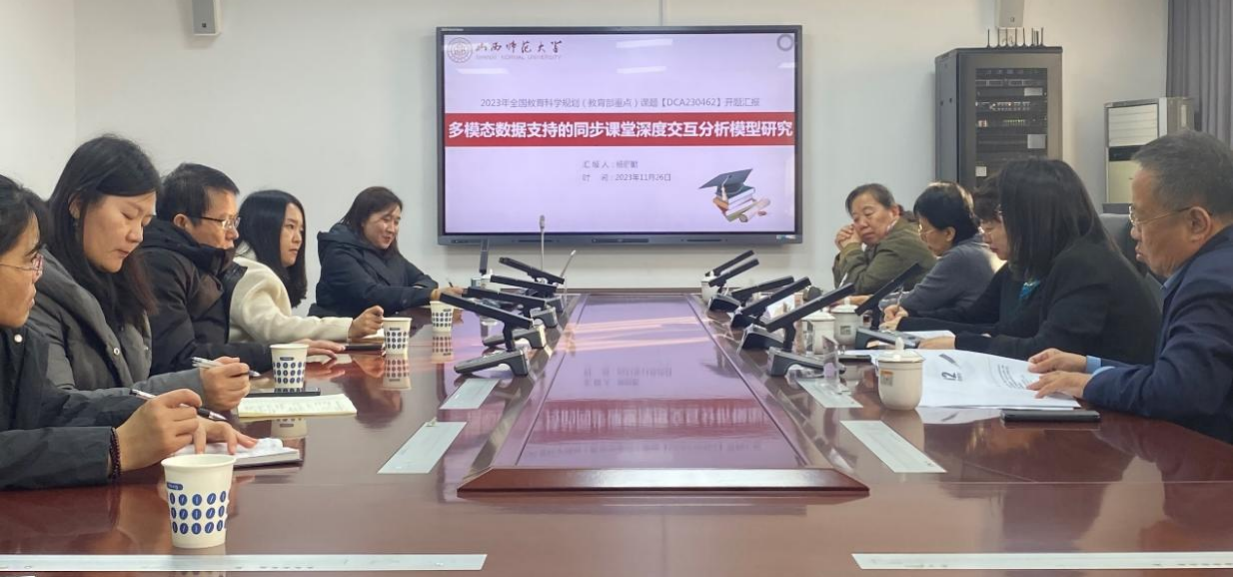 11月26日上午8:30,由永利3044集团官网教师杨丽勤主持的2023年全国教育科学规划(教育部重点)课题“多模态数据支持的同步课堂深度交互分析模型研究”(课题编号:DCA230462)在行政南楼5层教育学部会议室举行了开题论证会。参与开题论证的专家有西北师范大学郭炯教授、国家开放大学王迎研究员、山西省教育科学研究院卢红教授、永利3044集团官网王云教授和张潮教授。会议由张潮教授主持,课题组教师和教育技术学专业的研究生参加了此次会议。