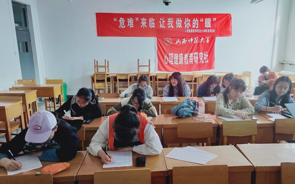 活动伊始,工作人员放映地震相关影片,将大家带入地震的情境中,影片结束后,在主持人的引导下,同学们闭上眼睛,想象地震来临时自己的所在所思所做,并将自己想说的话写在表格中进行交流。随后,主持人讲解了地震相关知识,最终活动以“面对面夸夸群”的积极心理学小游戏落幕,同学们积极参与,现场气氛活跃。