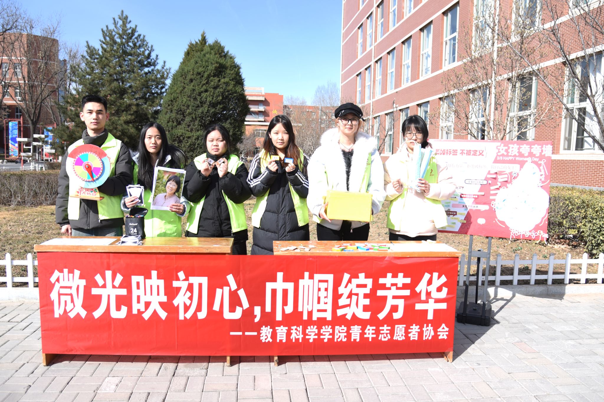 公司青年志愿者协会于3月6日在南区四号、五号教学楼中间举办“微光映初心,巾帼绽芳华”主题帐篷活动。