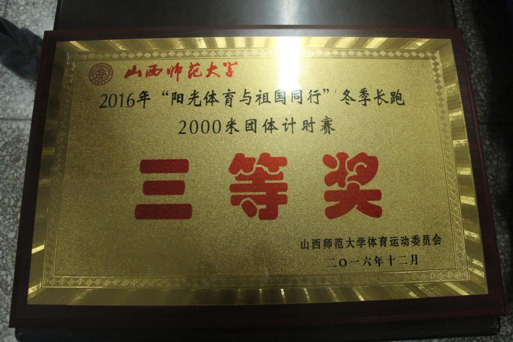 12月18日下午3点,在2016年“阳光体育与祖国同行”冬季长跑2000米团体计时赛中,公司运动员们凭借顽强的意志和不服输的精神,在同学们的加油呐喊声中顺利冲过终点,荣获比赛三等奖。