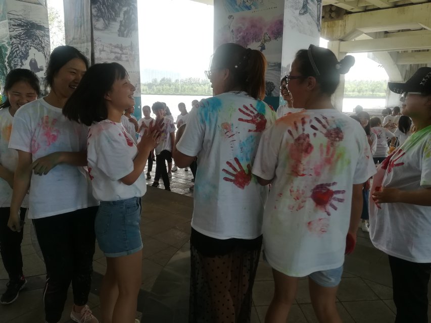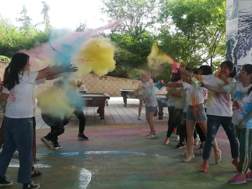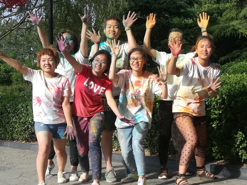 本次活动共设置5个检查点,其中有成语接龙,戏精本精和会传染的笑声三个带有任务的检查点。每一站,大家通过不同游戏释放自己的不愉快,通过在白色体恤上按手印加深彼此之间的友谊,在接受彩色玉米粉的同时接受来自他人的祝福,每个人都在游戏中获得快乐,缓解压力,结交朋友。到达终点后,所有人将彩粉洒向天空,洒向彼此。一时间,各种欢呼声此起彼伏,天空也变成了七彩斑斓的色彩。