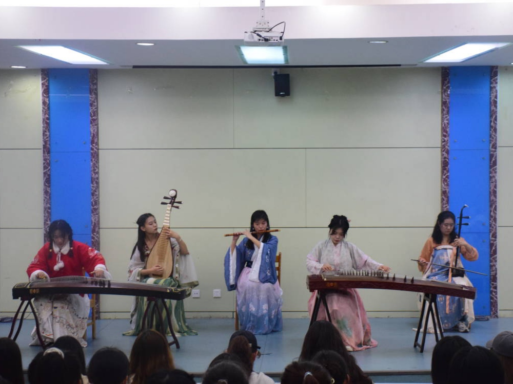 本次活动以红楼梦为主题展开。活动伊始,八音乐团的同学们合奏了民乐《枉凝眉》,用古典乐器弹奏出中华之韵,奠定了本次分享会的基调。活动过程中,同学们分享了自己欣赏和喜爱的红楼人物,介绍了《红楼梦》中“草蛇灰线,伏脉千里;字字有意,处处点睛”等写作艺术,并演唱了红楼梦判词、87版《红楼梦》主题曲及戏曲等,用不同的方式分享自己对《红楼梦》的赞美与热爱之情,将分享会推至高潮。最后,参与本次分享会同学进行合影留念,活动圆满落下帷幕。