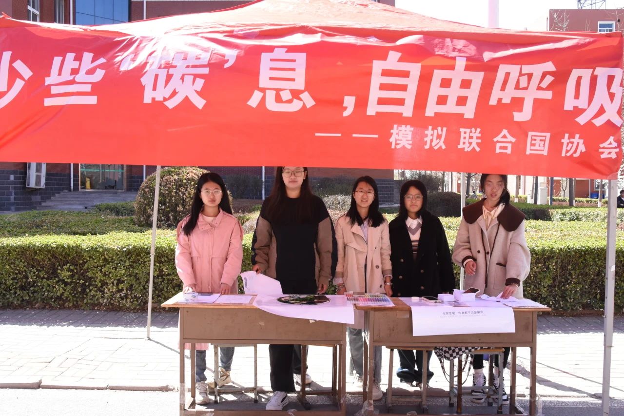 为进一步增强公司员工的环保意识,公司模拟联合国协会于3月30至31日在六号教学楼前开展“少些‘碳’息,自由呼吸”活动,公司员工积极参与。
